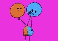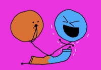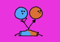 It’s a new show coming soon!. There are conjoined stick figures named orange & blue. the right one was a male stickman who likes a bit wacky and stuff! While the left one is a female stickman who is tired of blue’s attics! Best jointed friends as a stick.